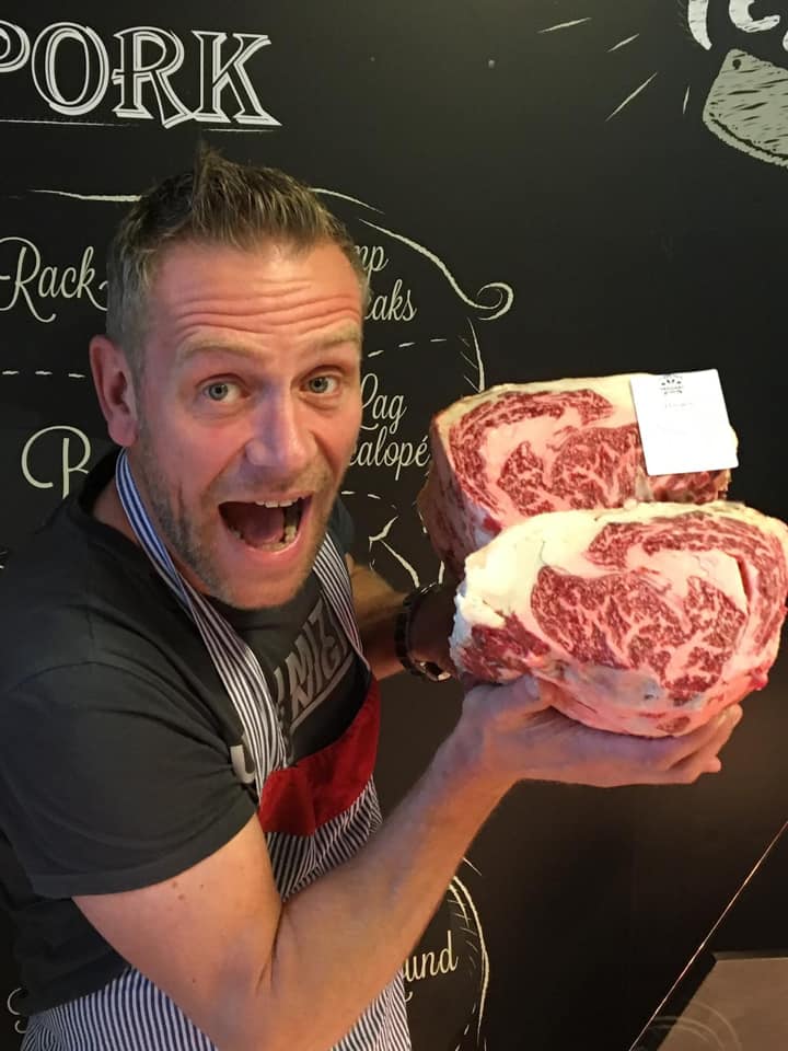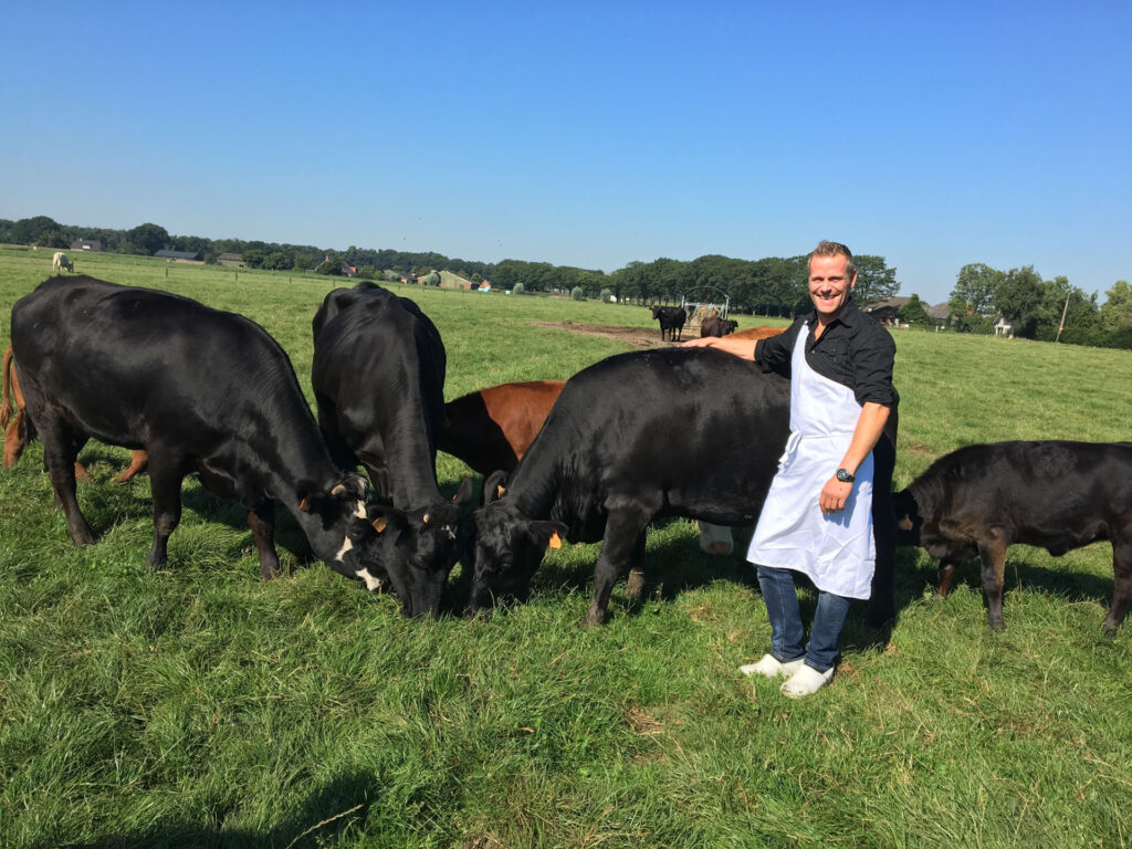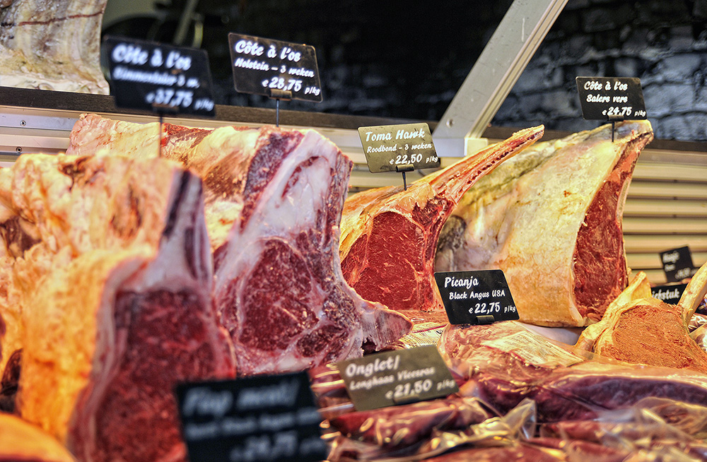 De meeste slagers zijn specialist in vlees maar wij gaan veel verder. Terroir speelt bij ons een belangrijke rol. Waar komt het rund vandaan, hoe is de boer ermee omgegaan, wat voor voer krijgt het rund? Een rund is van oorsprong een herkauwer die gras eet. Van afmesten met mais (grainfed) zijn we geen voorstander omdat het niet natuurlijk is. Geaderd vlees krijg je van nature door gras voeding. Maar dan moet je wel de juiste rassen hebben. Tevens speelt de leeftijd een rol. Daarom zijn we constant op zoek naar de beste runderen. 80% van ons assortiment halen we kort bij de bron uit Nederland en België. Maar soms ook daarbuiten, zoals de Rubia Gallega uit Spanje. We rijpen het meeste vlees zelf af. Dat wil zeggen dat het vlees minstens 12 dagen op karkas blijft hangen voordat we het gaan verwerken. Zo komt de ouderwetse vleessmaak het beste tot zijn recht. Dry-aged vlees hangen we 3 weken af. Dat is terug te vinden op de omschrijving 3W (= 3 weken dry-aged).
