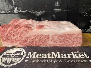 Japanse Wagyu A5 bms 10-12. Deze shortribs zonder been zijn echt het beste wat u kunt krijgen. Diepvries. Bijzondere smaakbeleving. Geen afval van bot maar puur vlees. Alleen wat Keltisch zeezout en wat peper toevoegen is voldoende. Gebruik geen rub op dit vlees, is zo zonde!